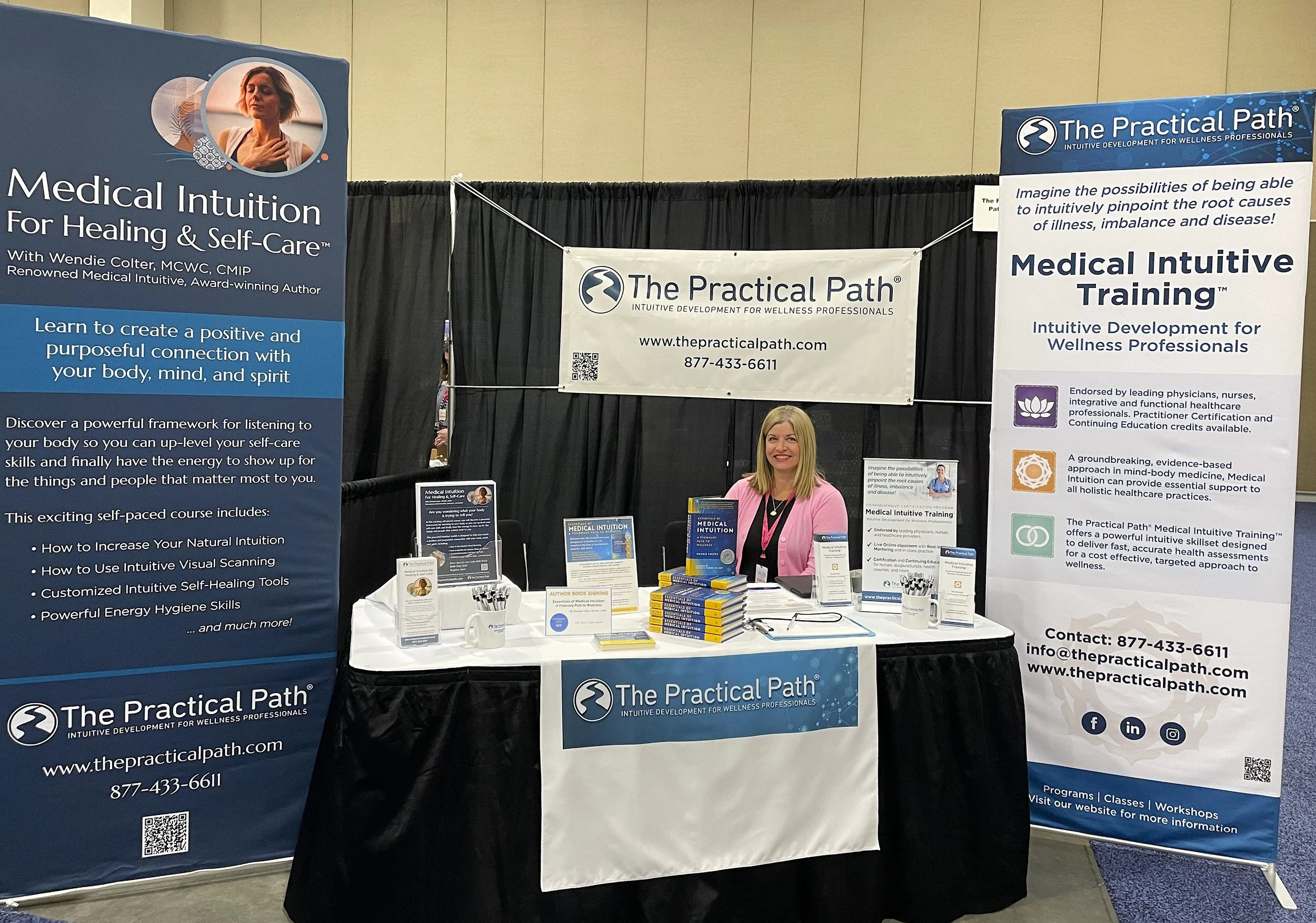 The lovely Nicole Lund, LAc, CMIP tending our booth at the 2024 Energy Healing Conference